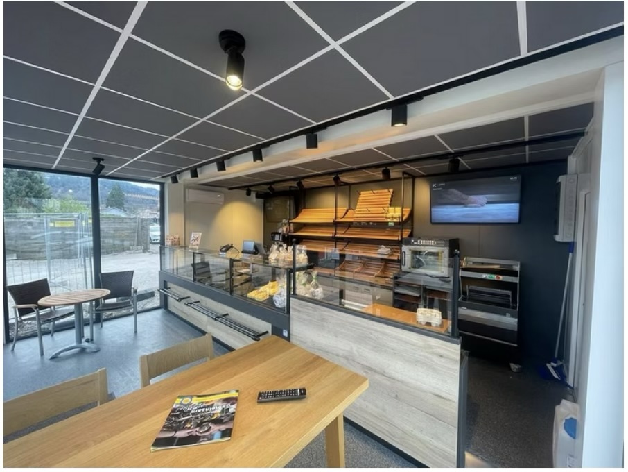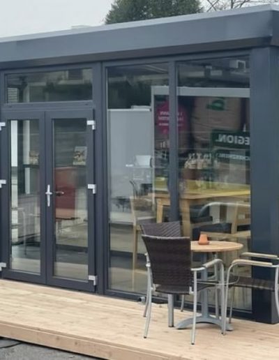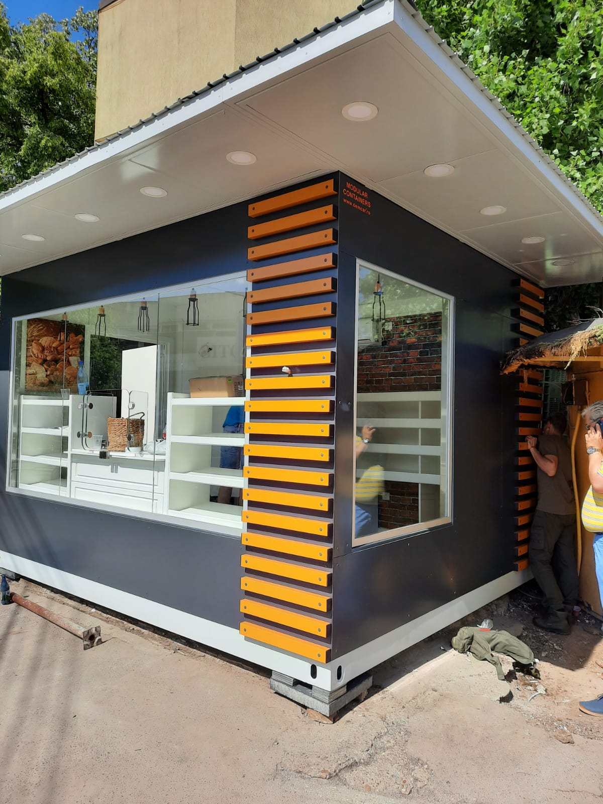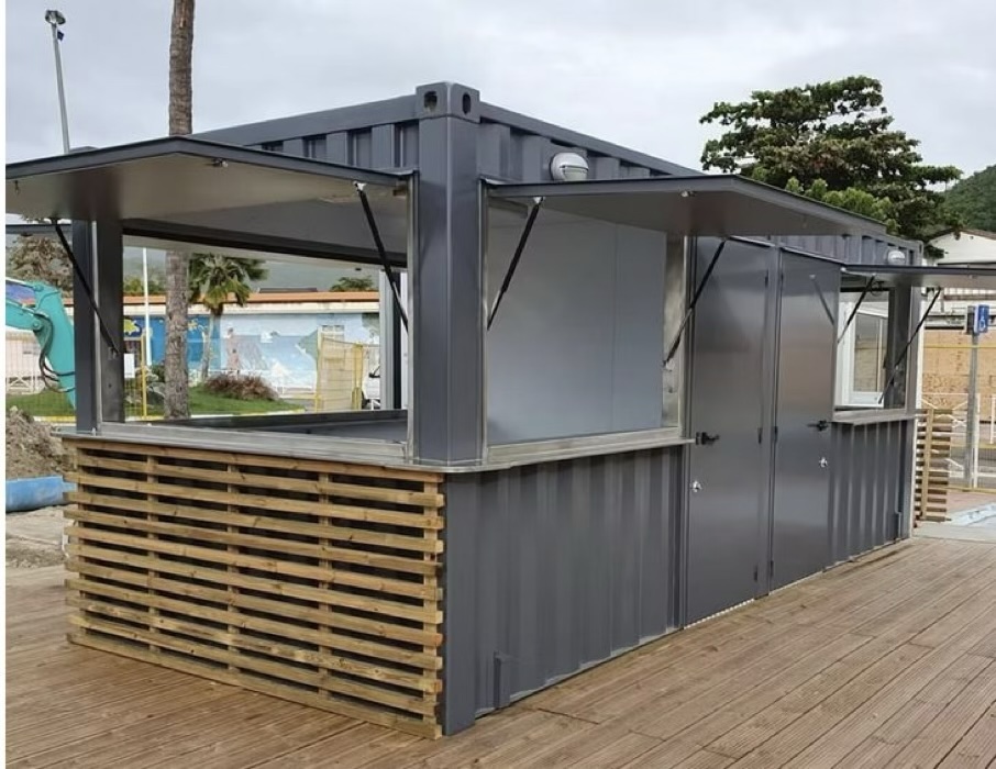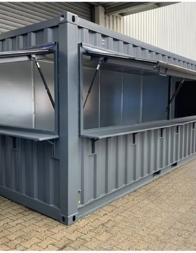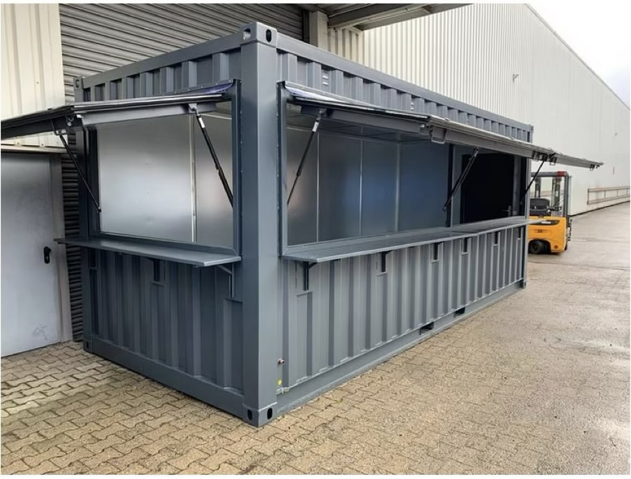 Jeder Container verfügt über eine integrierte Theke und praktische Klappfenster, die den Verkauf erleichtern.