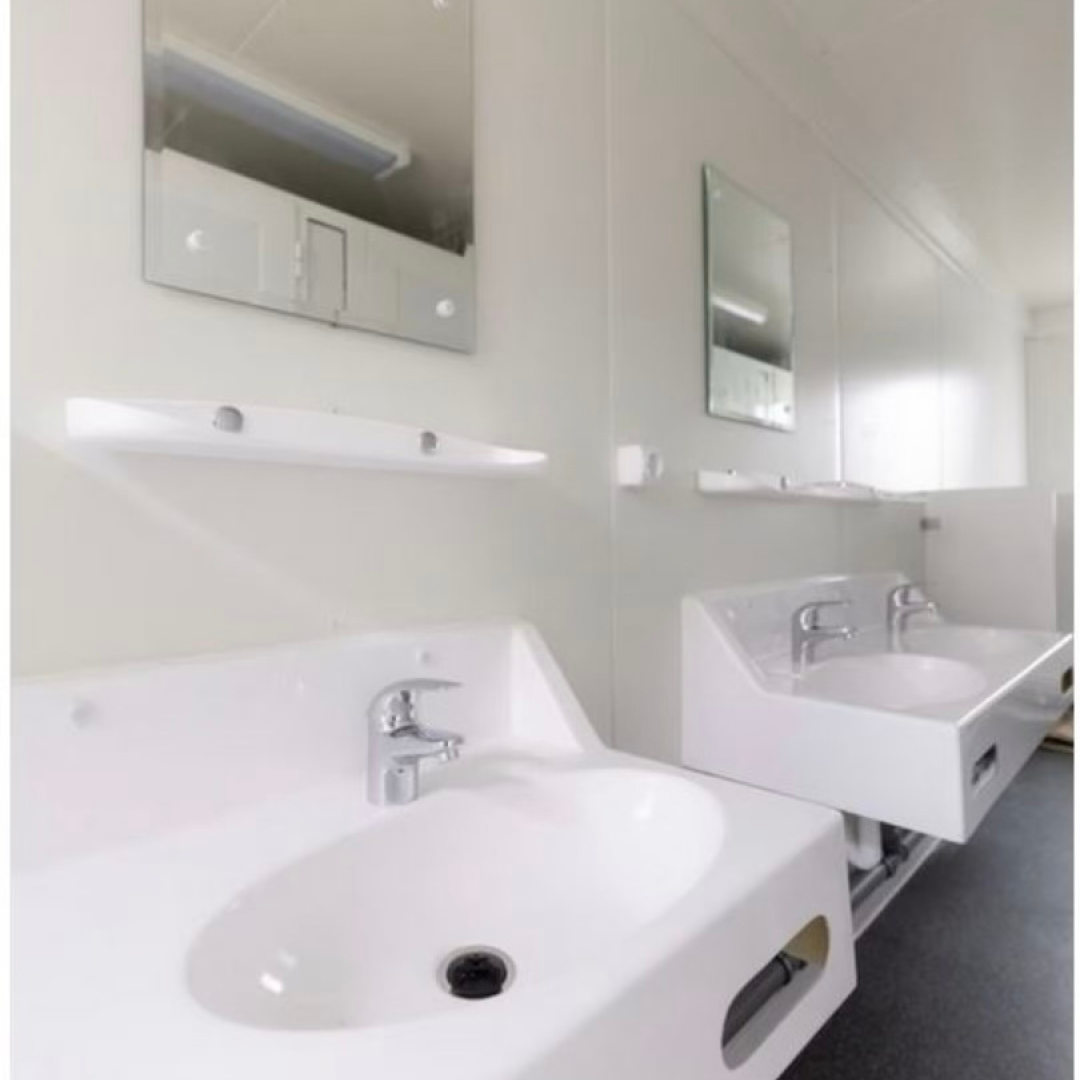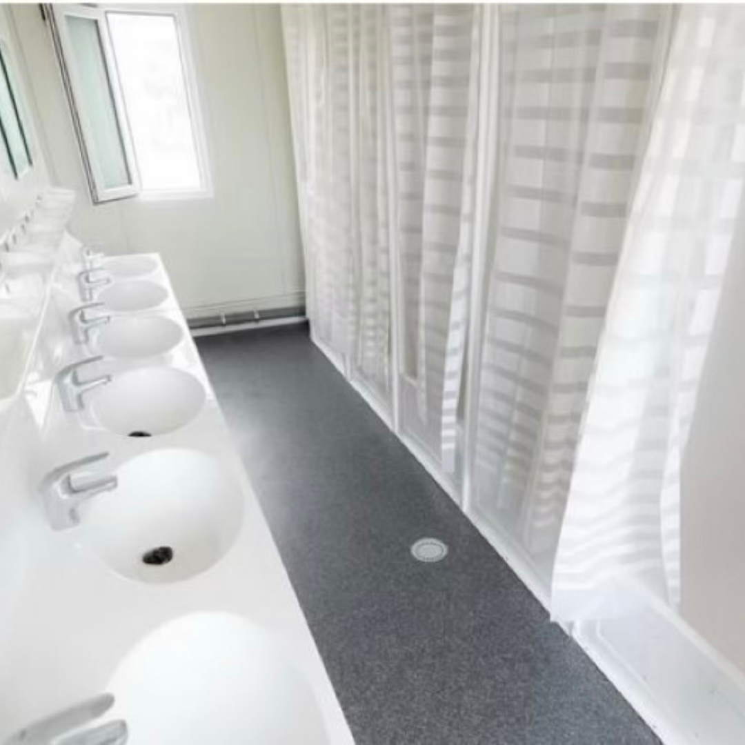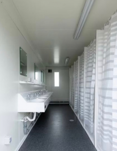 Unsere Container bieten alles, was Sie brauchen – von Duschen bis zu WCs, alles ist inklusive.